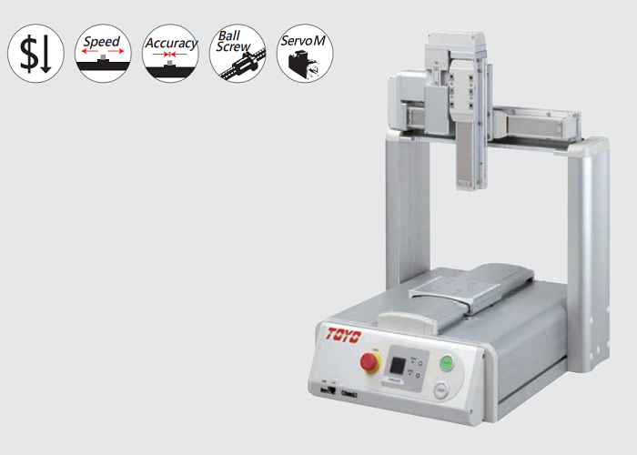 TOYOZ6.COM-尊龙集团桌上型机械手高精度、使用方便、结合专业开发之TOYO FSE软件做点胶机功能,使点胶涂布功能更加丰富。内建CAD转路径功能,可使教导更快,搭配CCD和Laser可以进行XYZ坐标补正,可做到路径的位置连续补偿。可应用于点胶、銲锡、视觉检测、精密对位等场合。